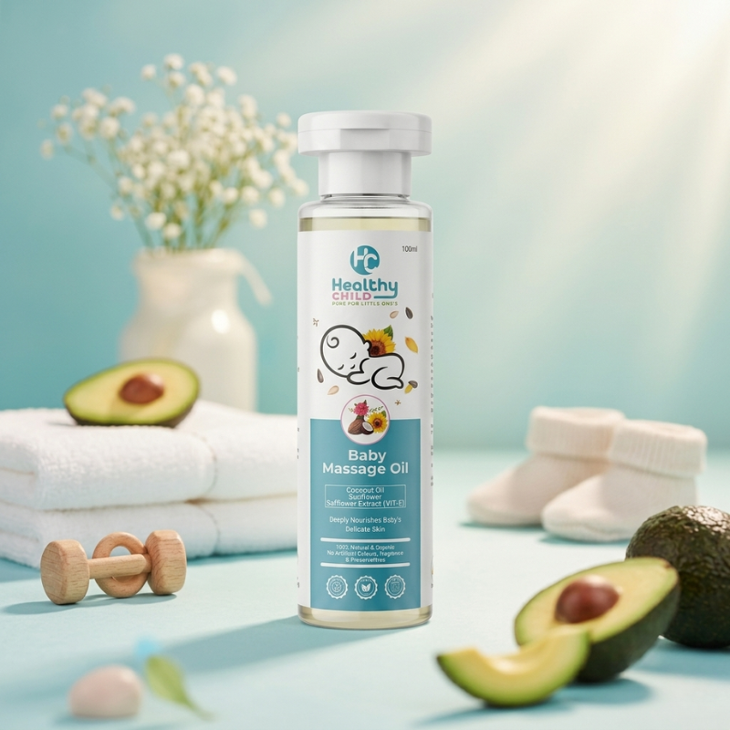 HealthyChild Baby Massage Oil is specially formulated for delicate baby skin. Created by baby care experts and recommended by pediatricians, it nourishes, softens, and protects your baby’s skin while supporting healthy growth and relaxation. Made with natural oils and mild herbal extracts, it is safe, gentle, and ideal for daily massage, helping babies sleep peacefully and feel comfortable all day.